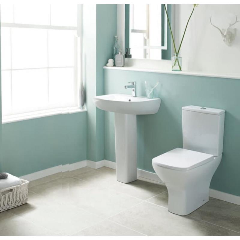 A gloss white classic square design toilet made from easy to clean glazed ceramic.