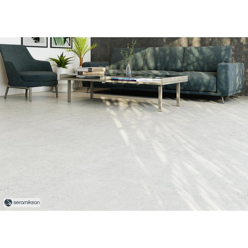 A white matt Wall and Floor tile in a stone effectAlso availableBeigeBlack..